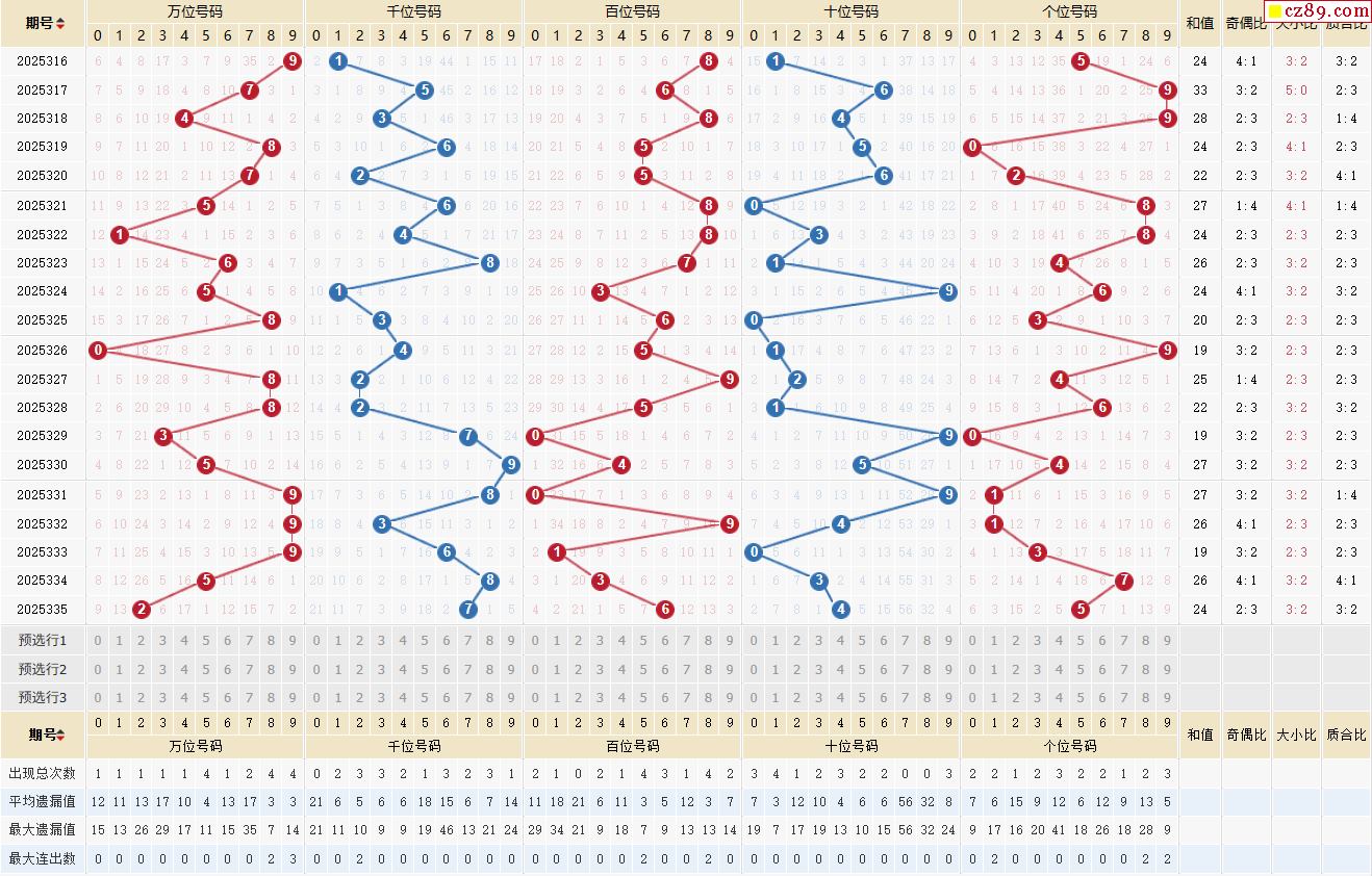 336期体彩排列5近期历史号码图表