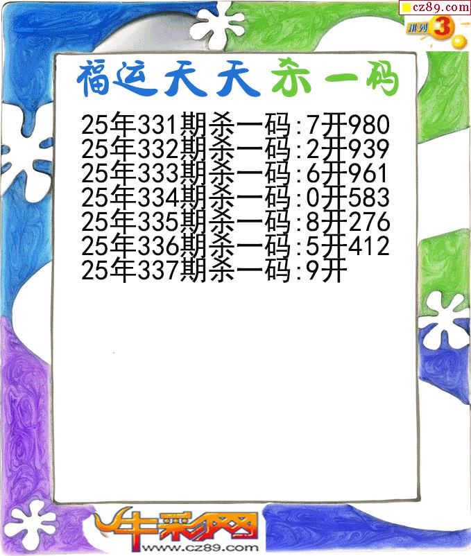 2025年337期牛彩网体彩P3画迷图谜汇总分享