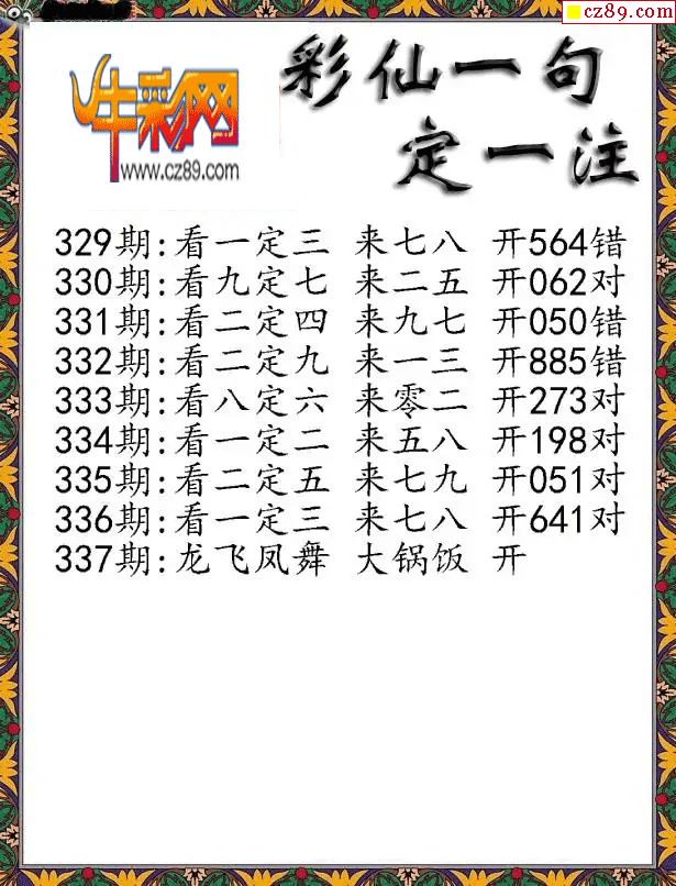 2025337期牛彩一句定三码