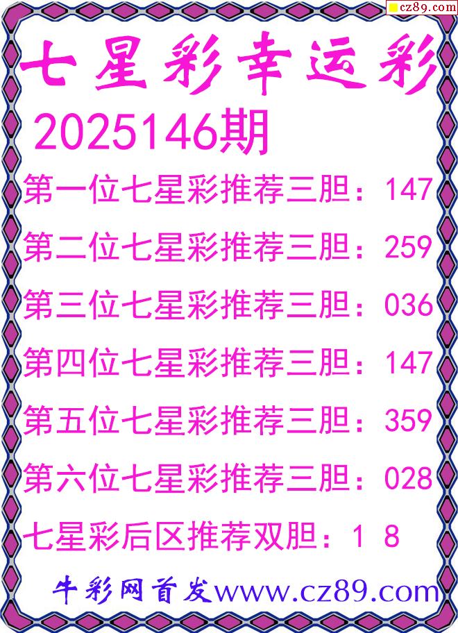 2025年146期 牛彩版七星彩专家预测总汇分享