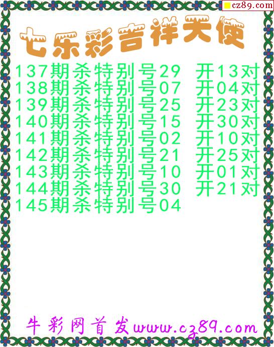 七乐彩2025145期流光岁月杀码图谜