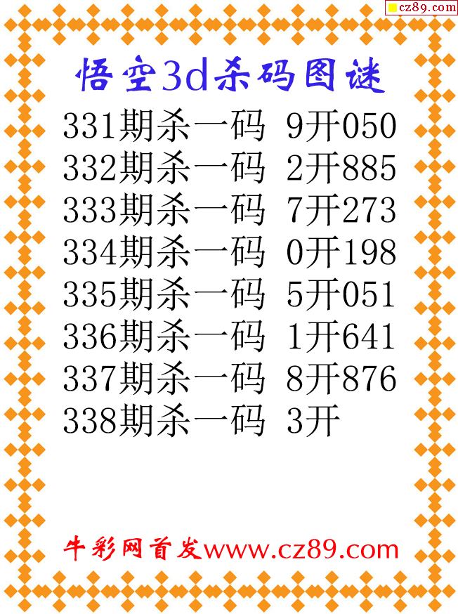 雄霸杀码2025338期3d图谜(原创)
