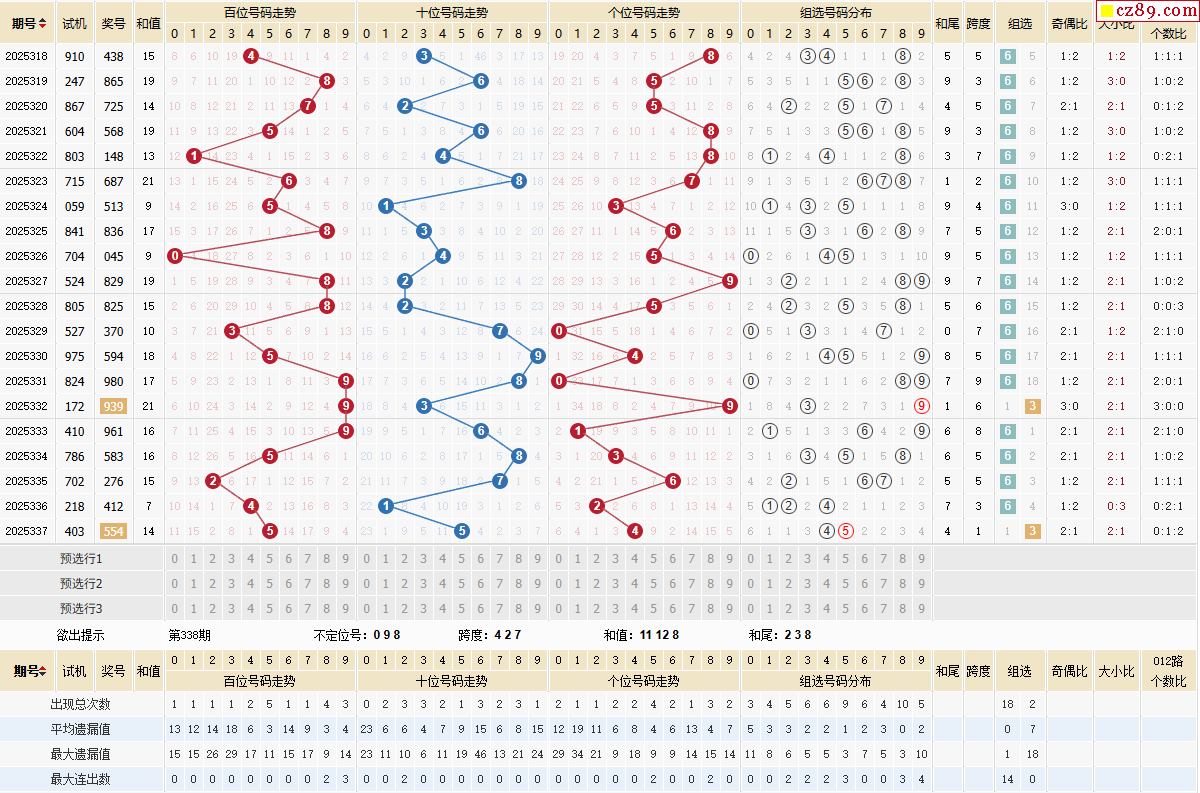 338期体彩排列3近期历史号码图表