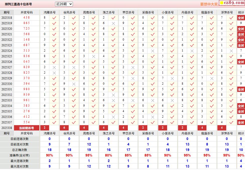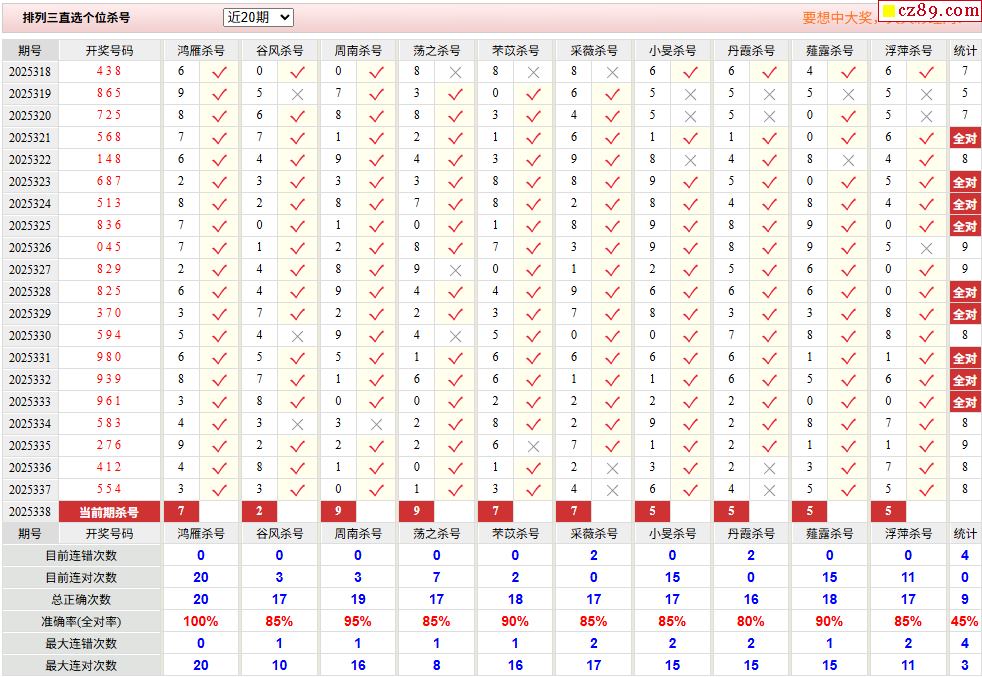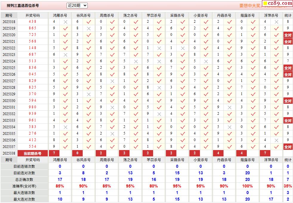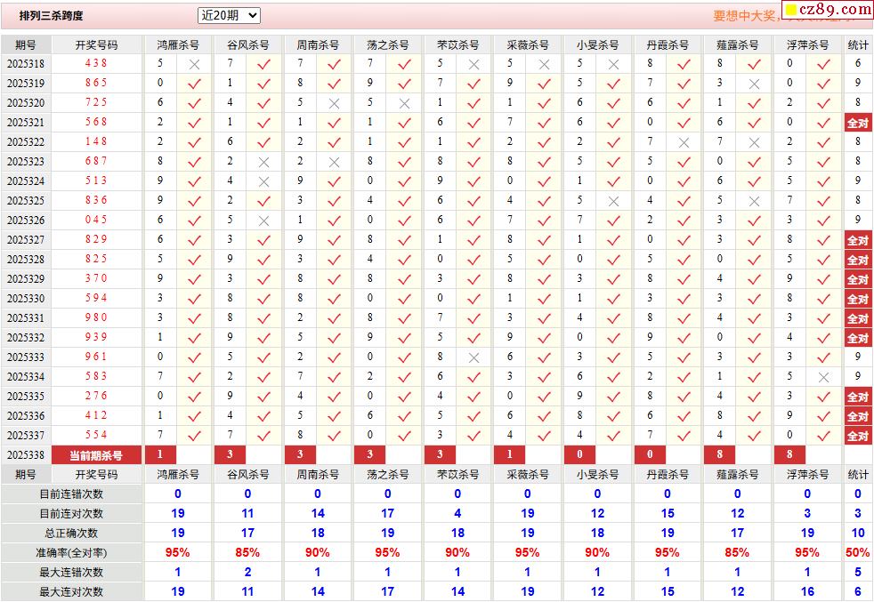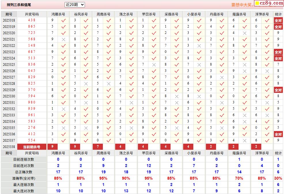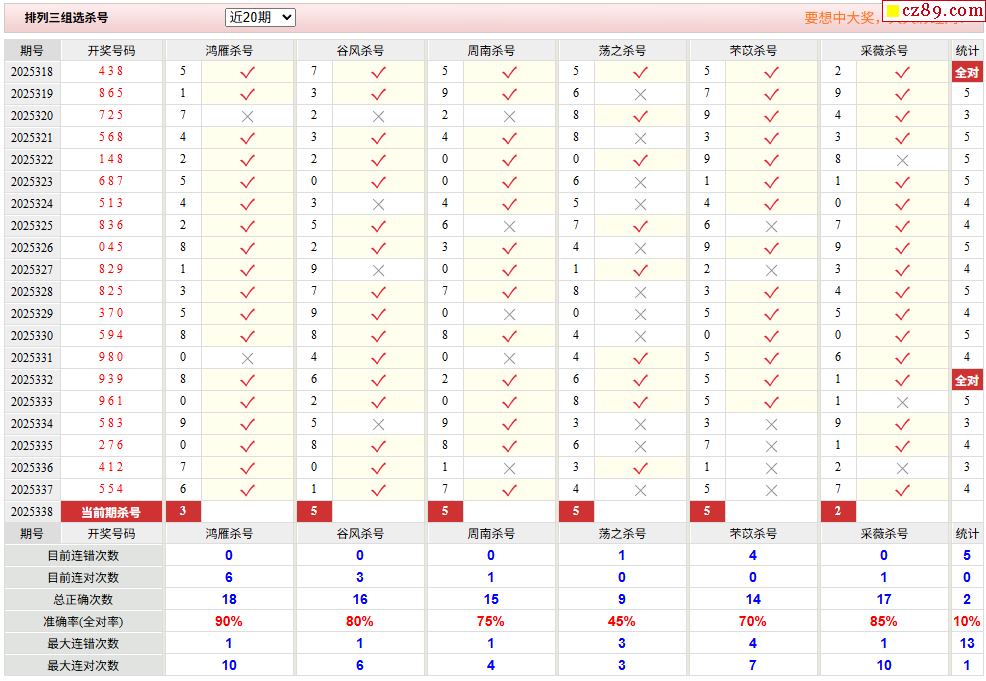 25年338期彩宝贝专家体彩P3杀号定码图表
