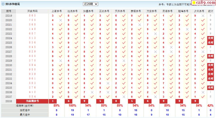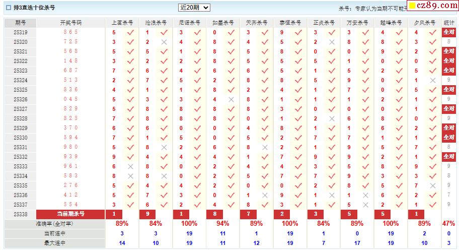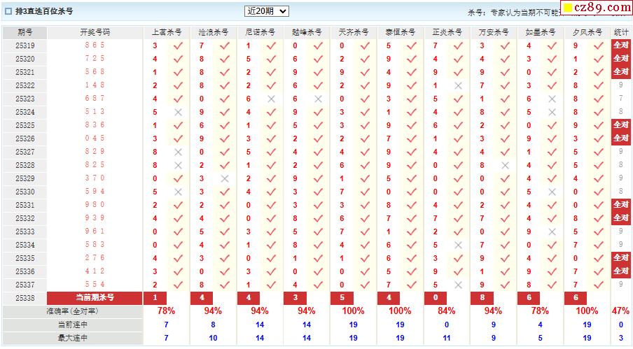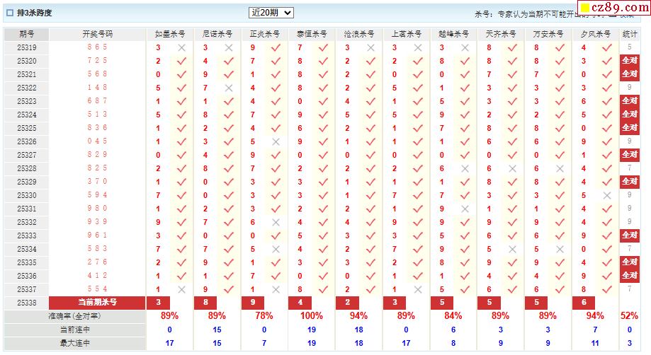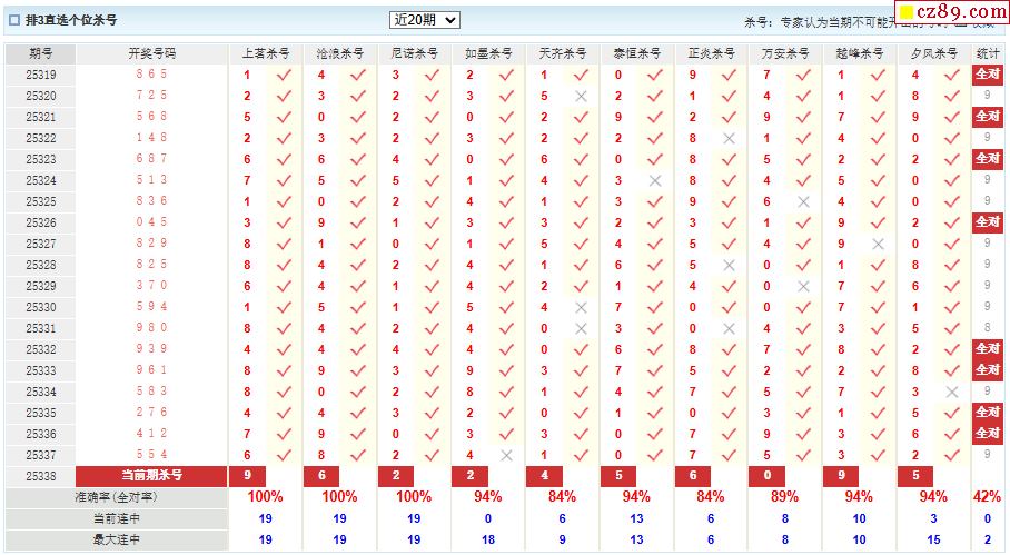 25年338期彩宝贝专家体彩P3杀号定码图表