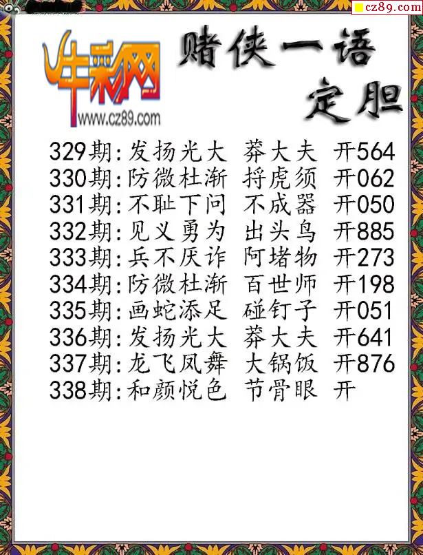 福彩3D2025338期彩赌侠一句定三码字图谜