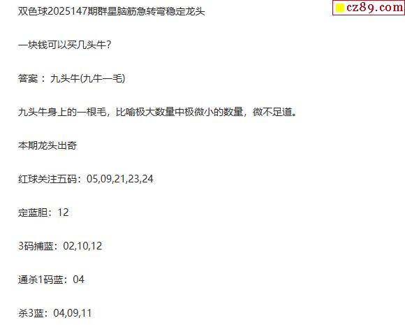 25年福彩双色球147期 群星脑筋急转弯定龙头字谜