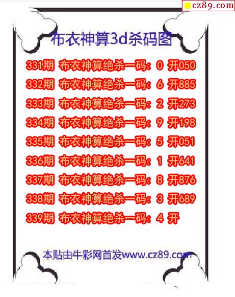 布衣神算杀码2025339期3d图谜(原创)