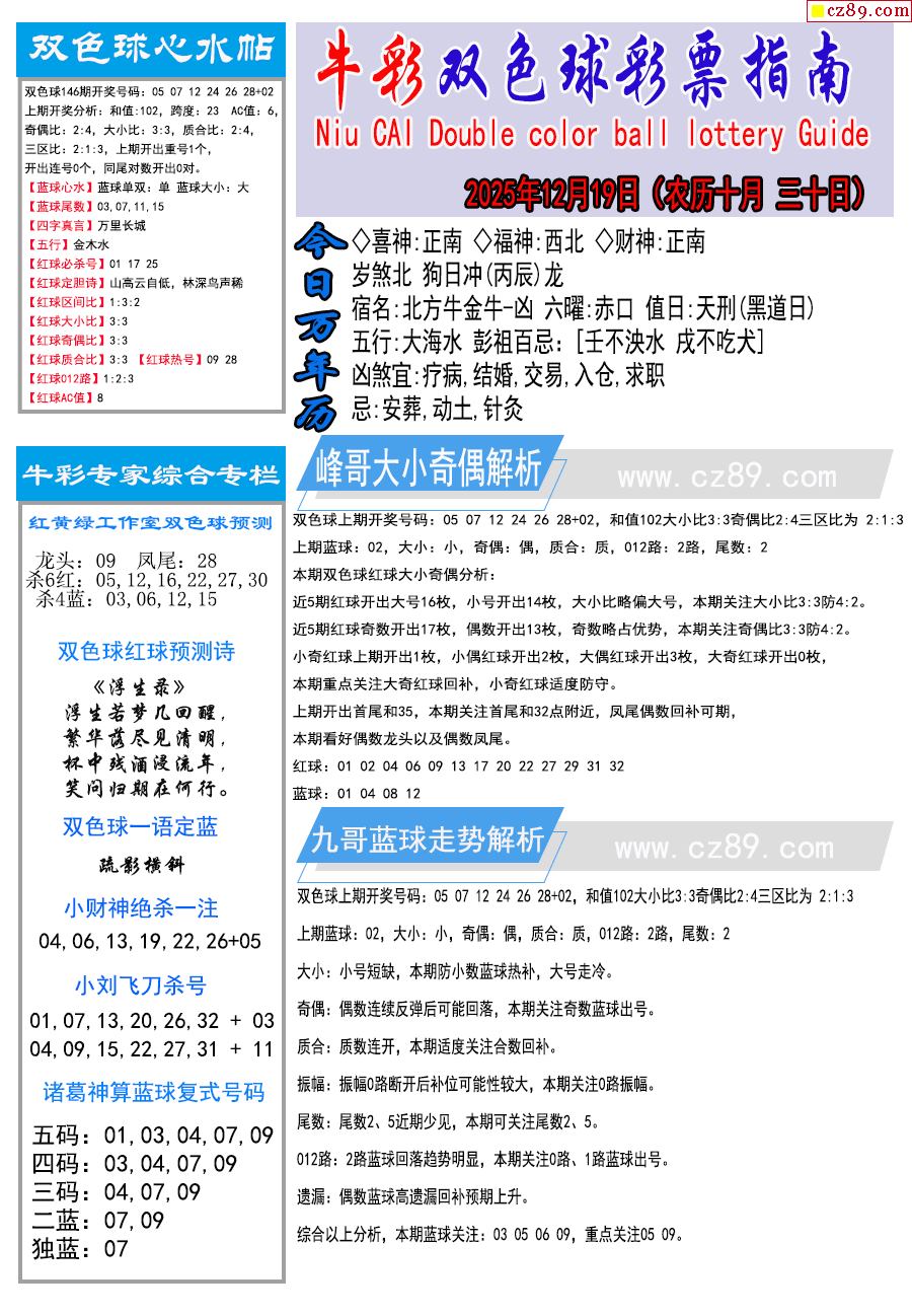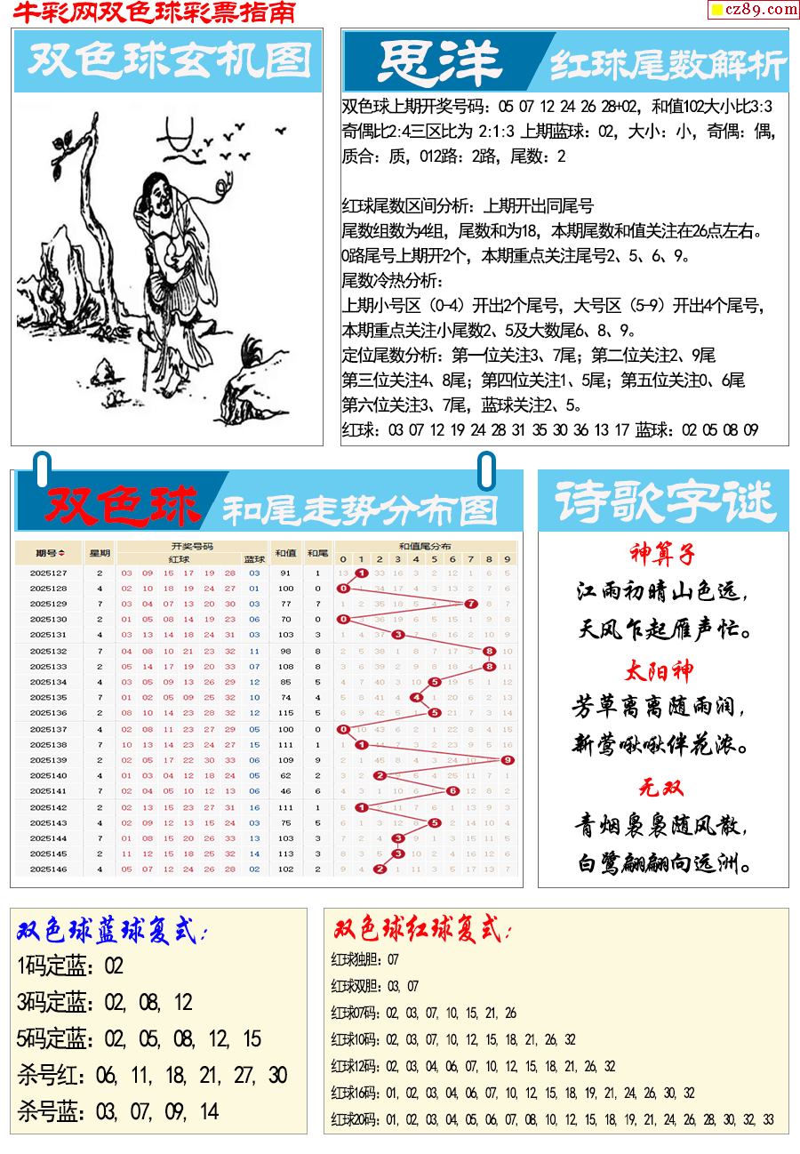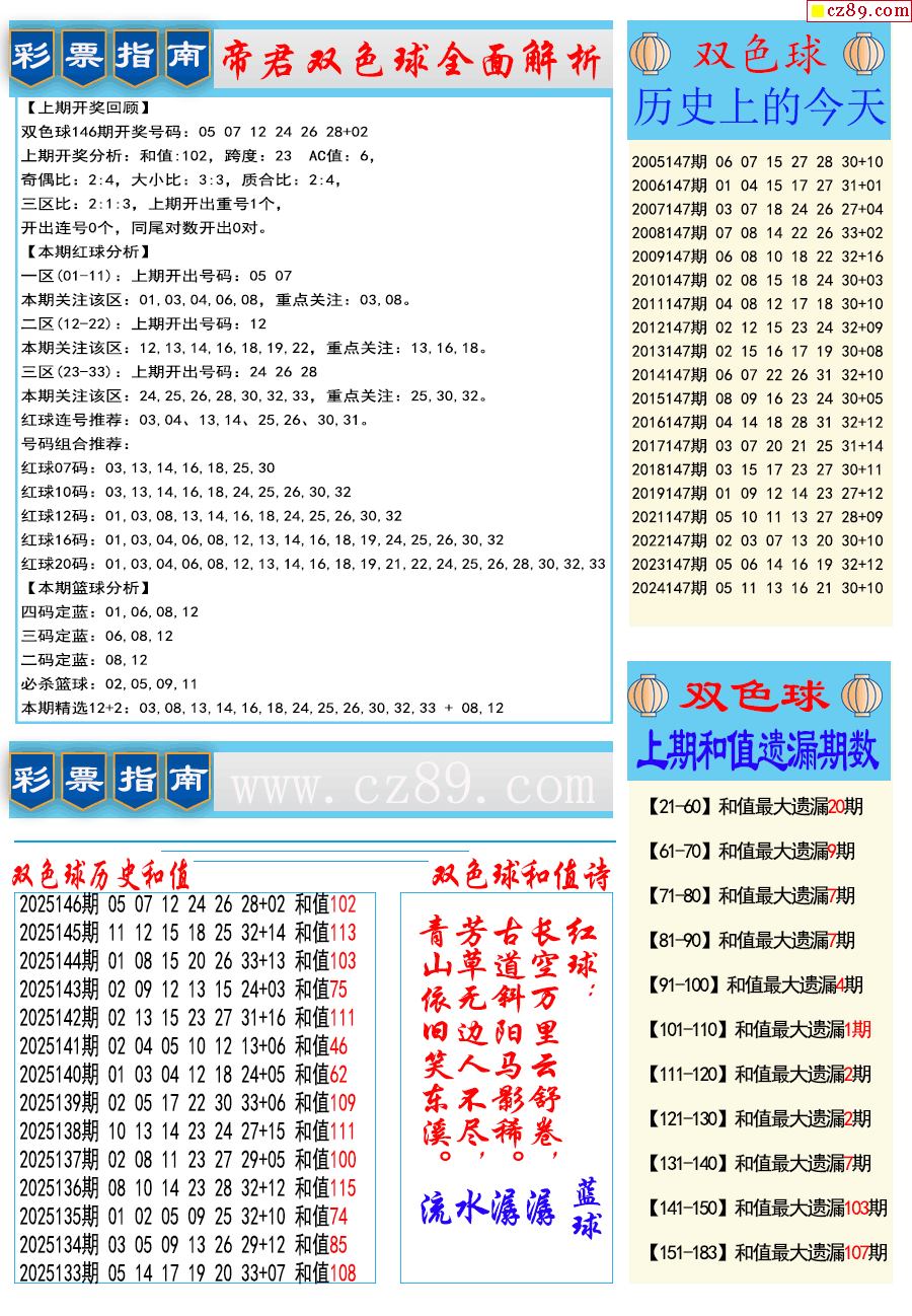 25年147期双色球彩票指南【牛彩版】