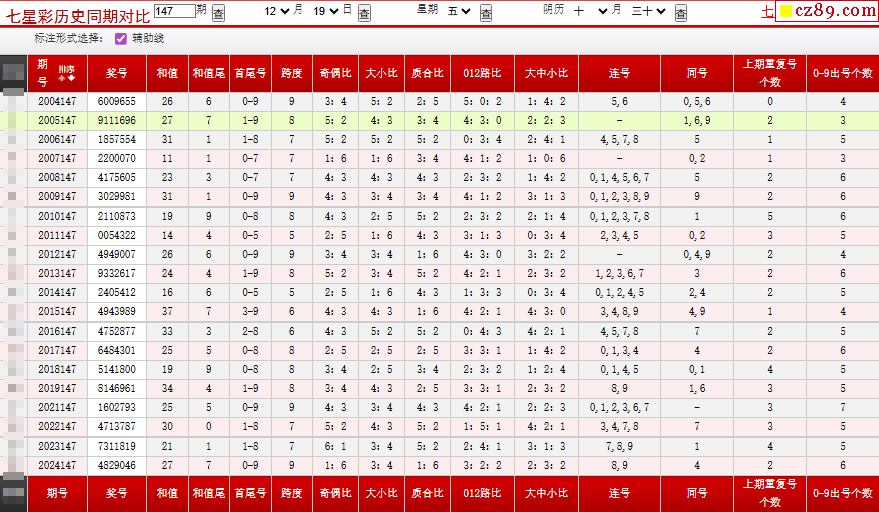 147期七星彩历史同期对比图