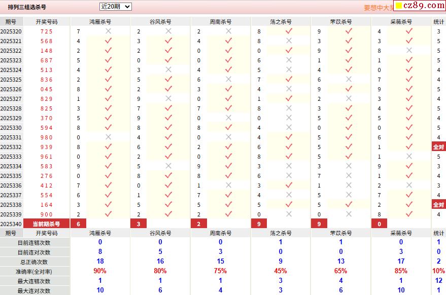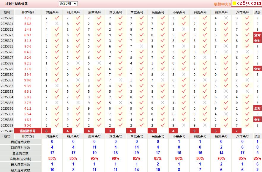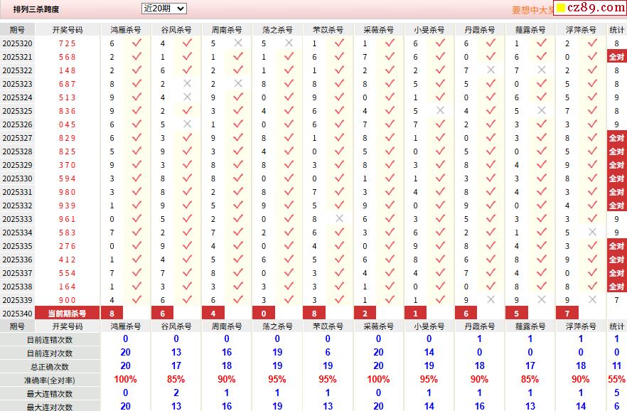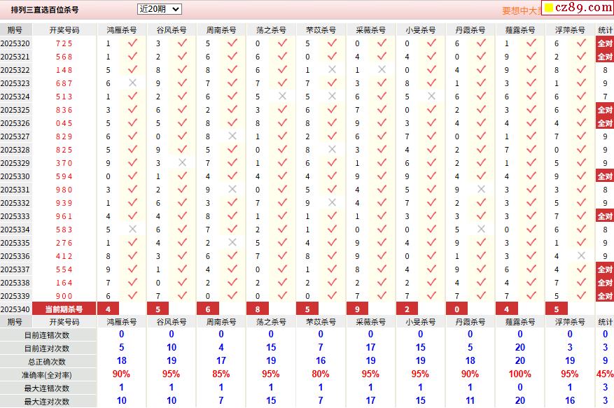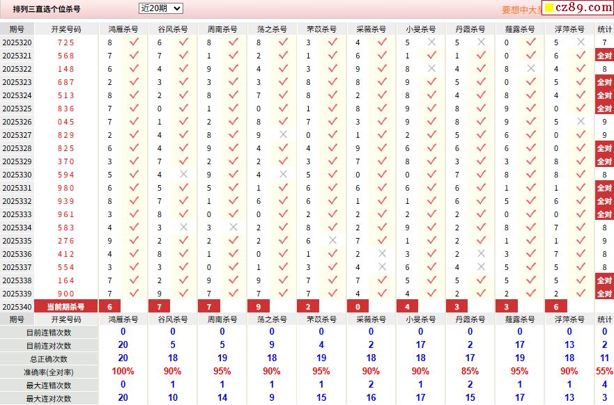 25年340期彩宝贝专家体彩P3杀号定码图表