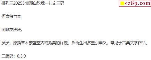 2025340期排列三绿琵琶一句话定三码