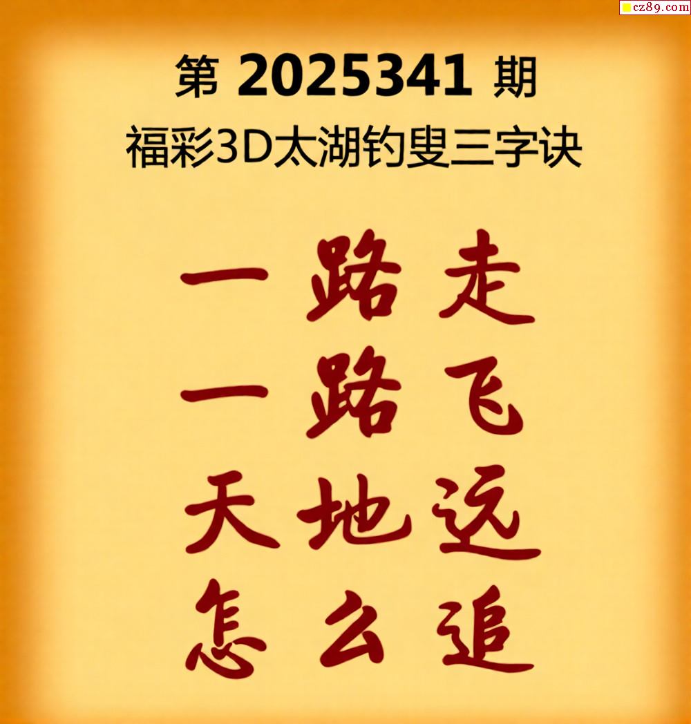 25年341期3d字谜太湖钓叟三字诀《保真》