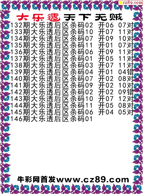 大乐透146期牛彩特邀专家前区后区杀号定胆图表