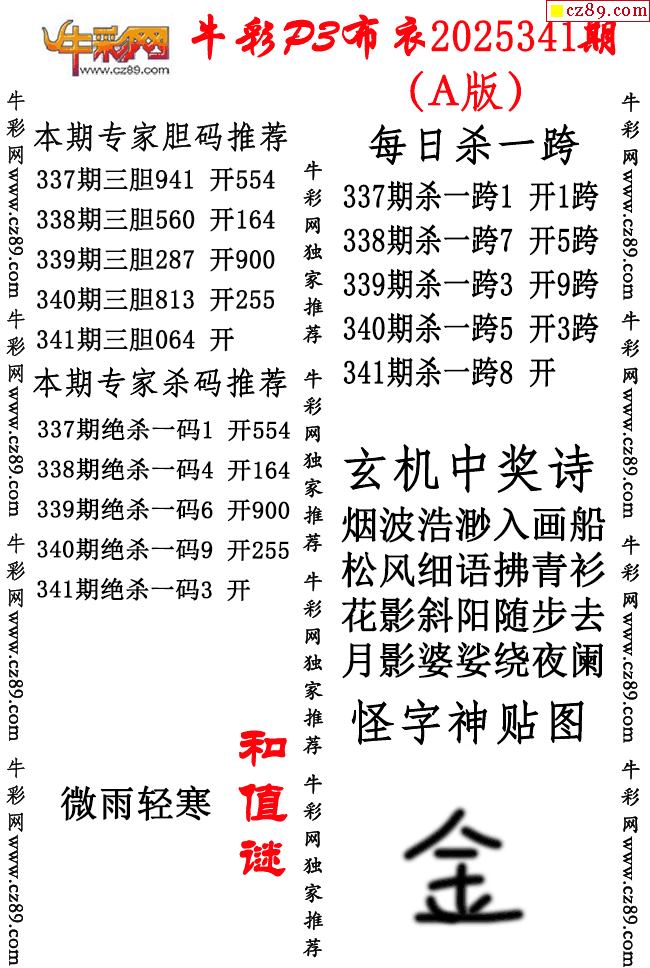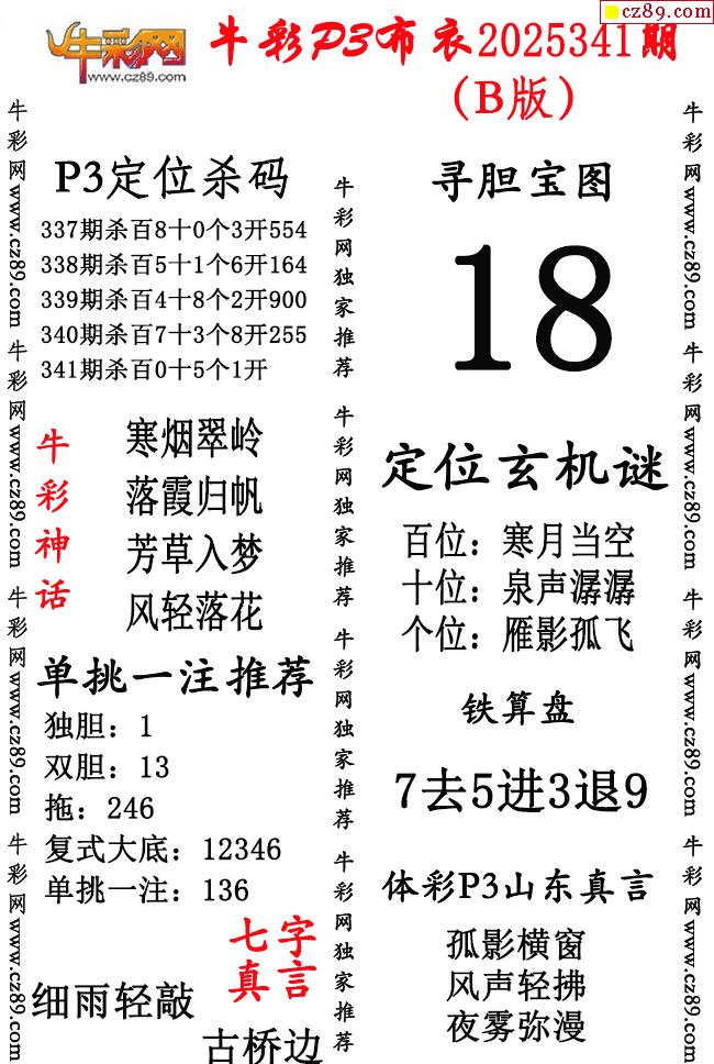 牛彩P3布衣25年341期AB版图谜(精华版)