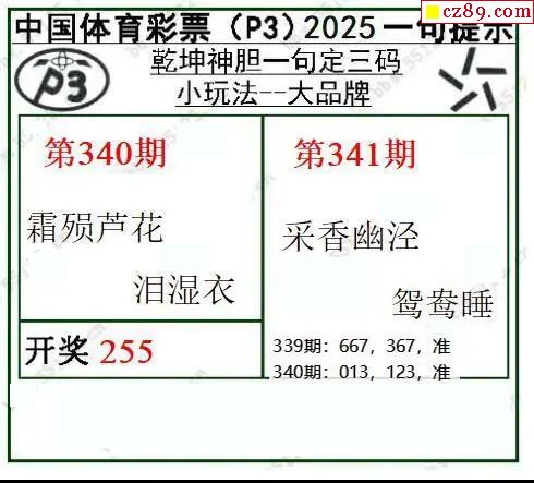 小军网摘25年341期体彩P3彩报图谜