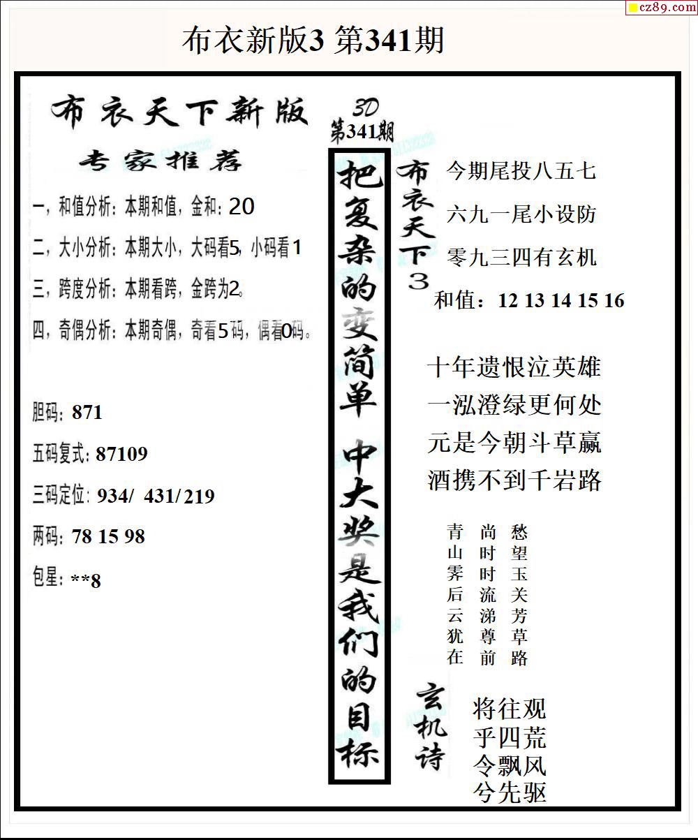 布衣天下新版2025341期3d图谜