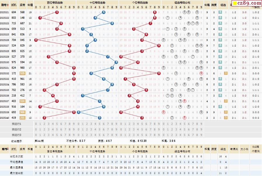 341期体彩排列3近期历史号码图表