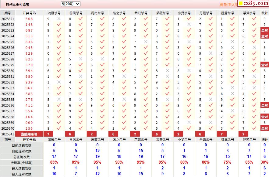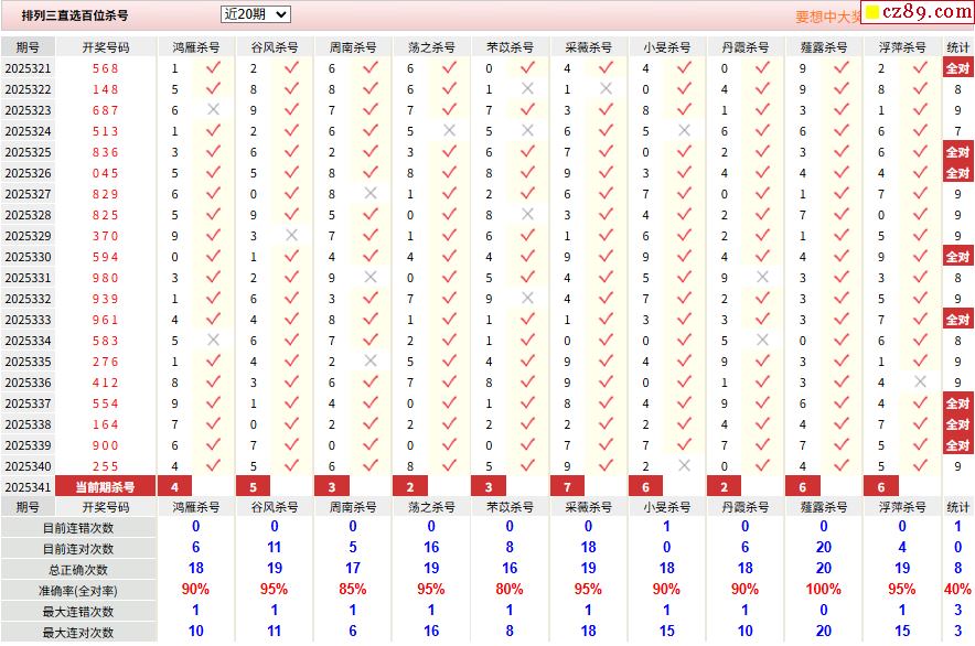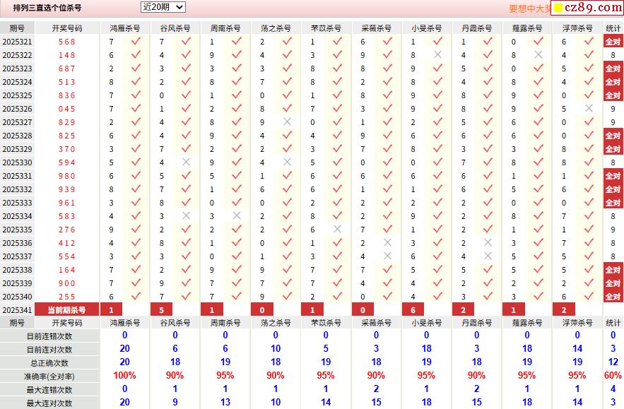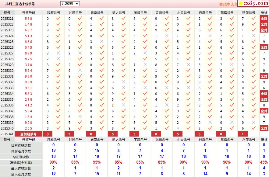 25年341期彩宝贝专家体彩P3杀号定码图表