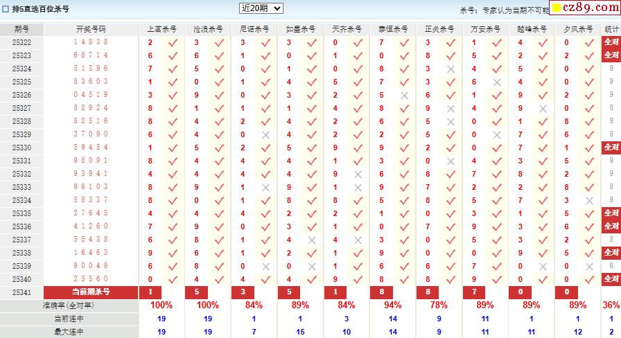 25年341期彩宝贝专家体彩P3杀号定码图表