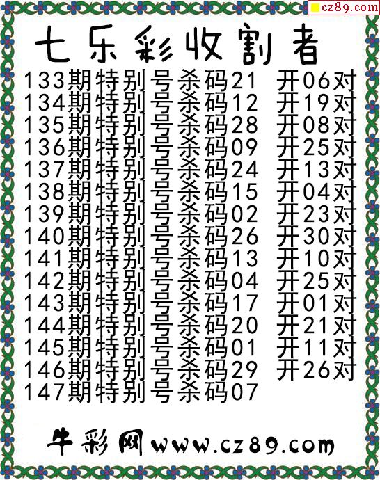 2025年147期七乐彩 女经怒杀4码预测推荐