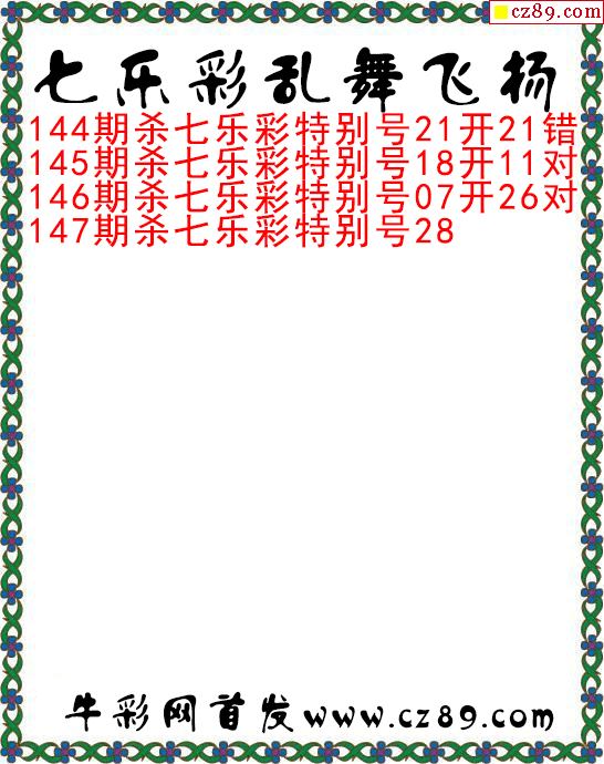 2025年147期七乐彩 女经怒杀4码预测推荐