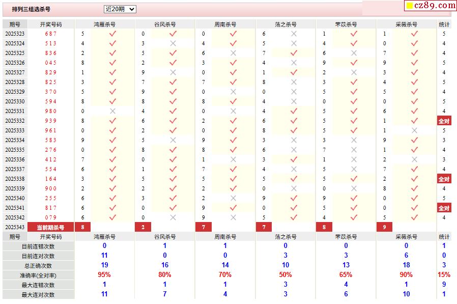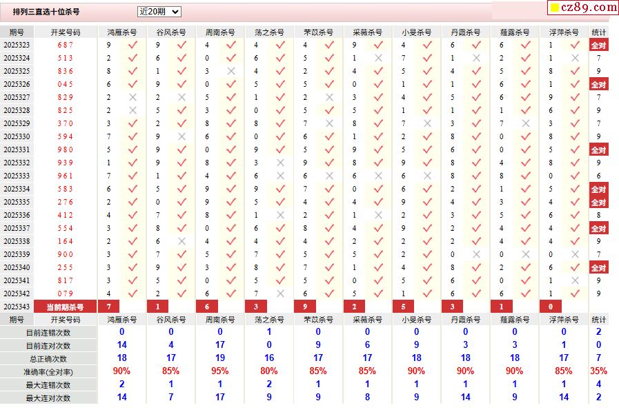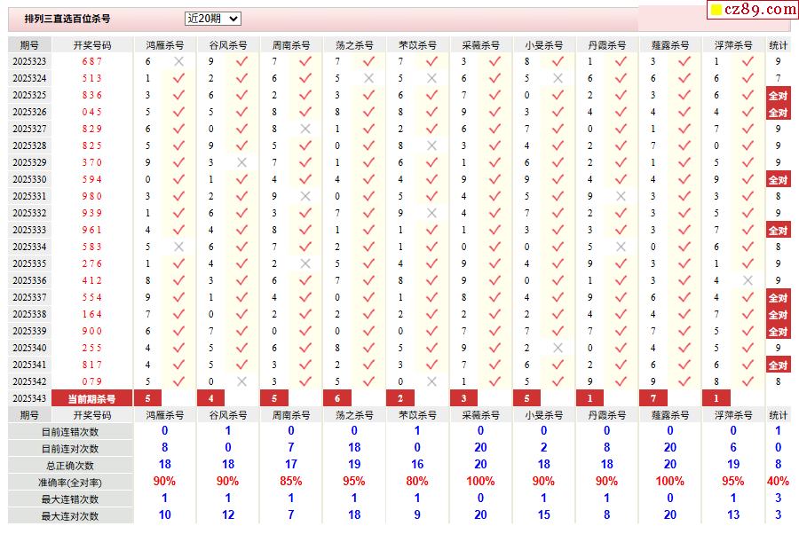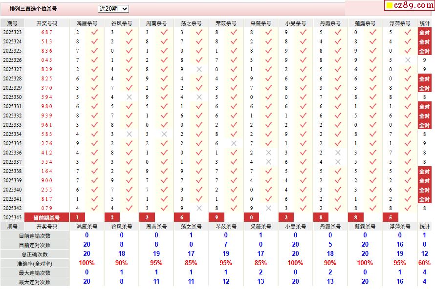 25年343期彩宝贝专家体彩P3杀号定码图表
