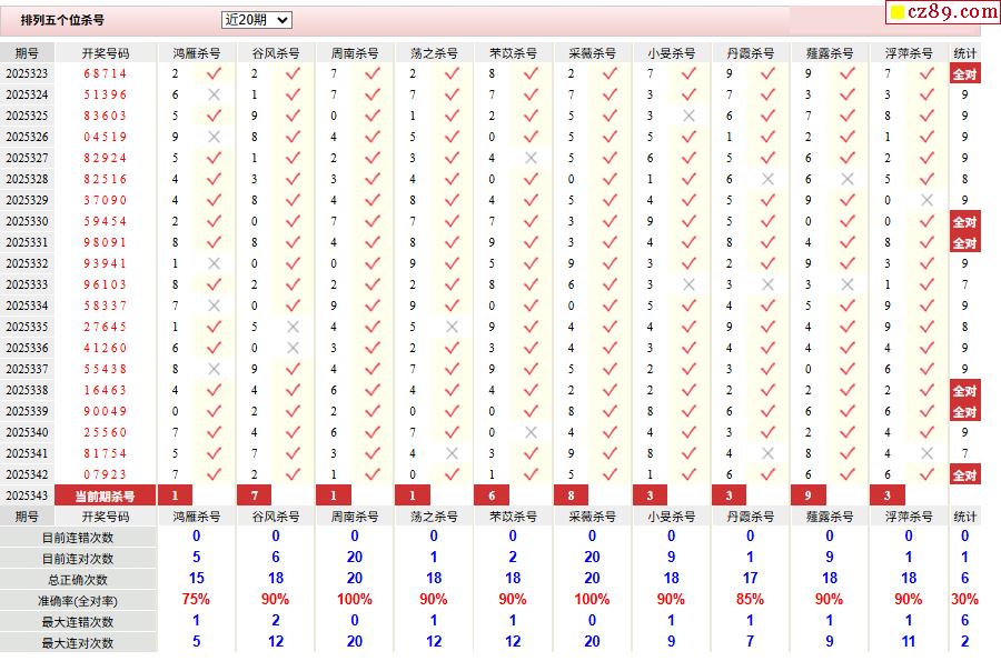 25年343期彩宝贝专家体彩P3杀号定码图表