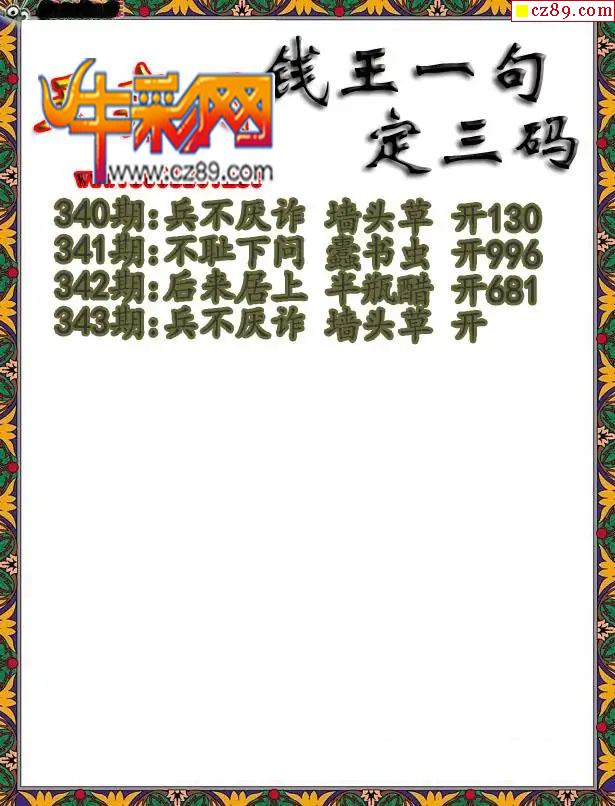 福彩3D2025343期钱王一句定三码字图谜