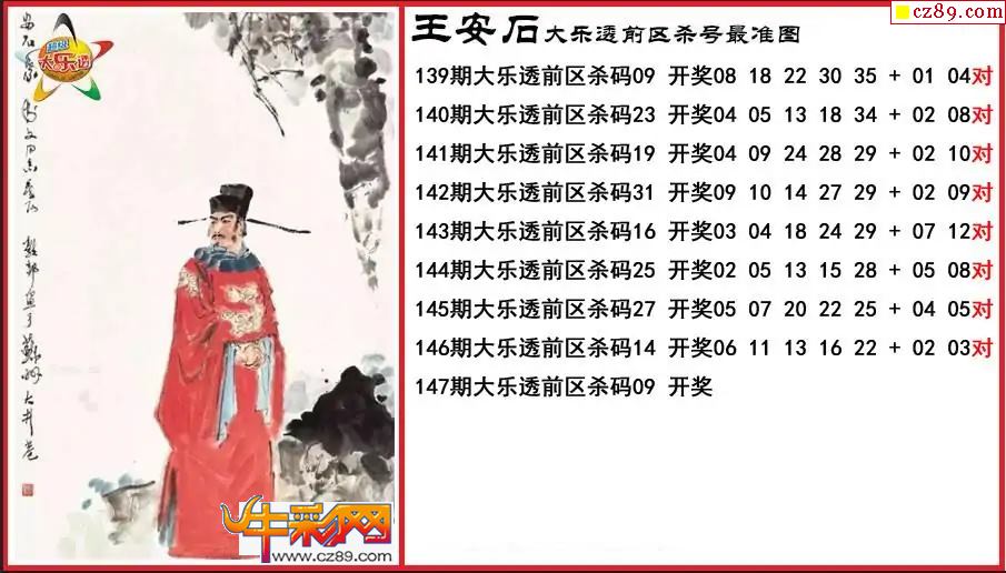 大乐透147期王安石前区杀号最准图