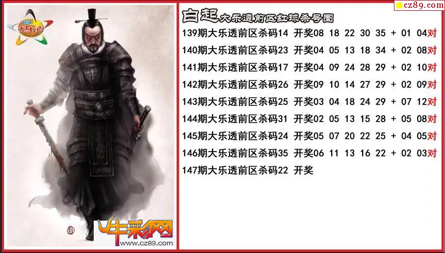 大乐透147期牛彩特邀专家前区后区杀号定胆图表