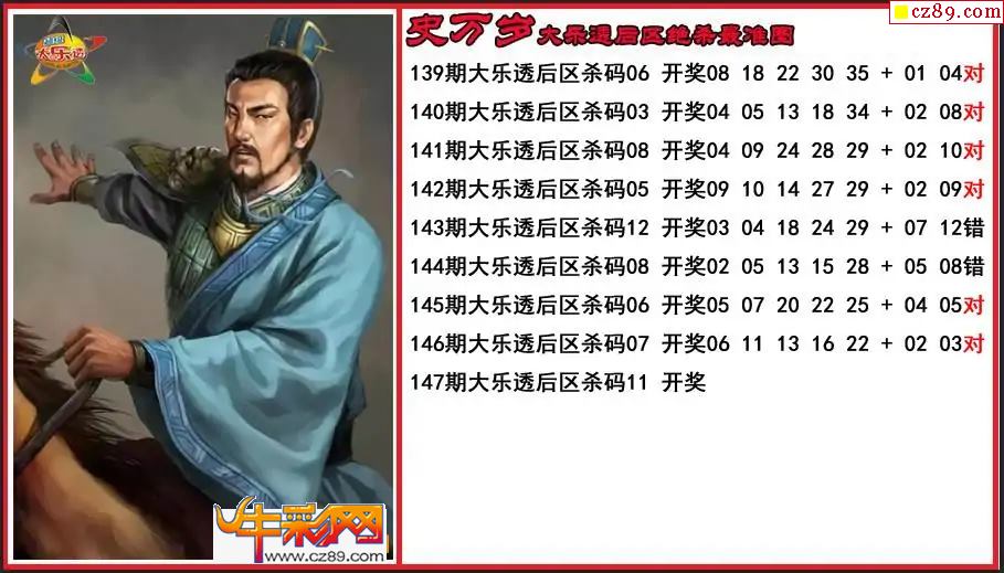 大乐透147期牛彩特邀专家前区后区杀号定胆图表