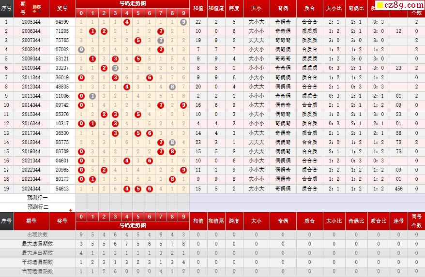 第344期体彩P5历史同期对比