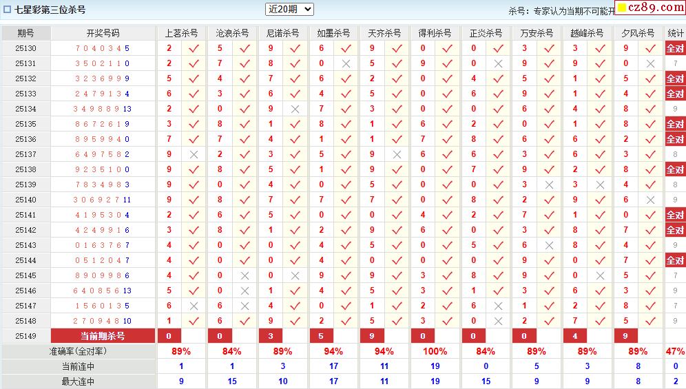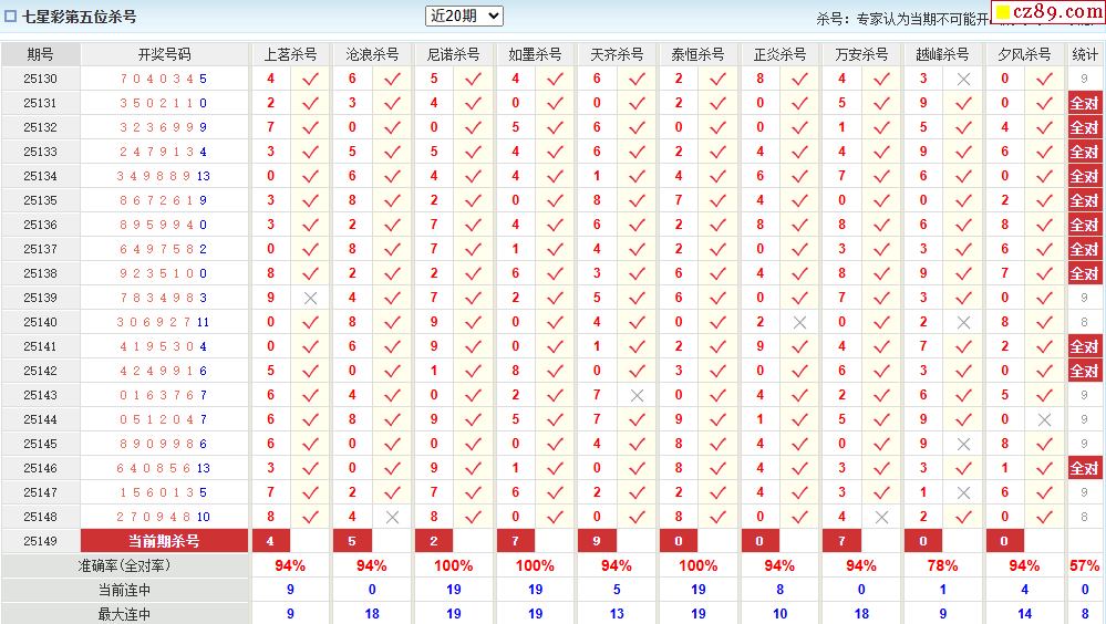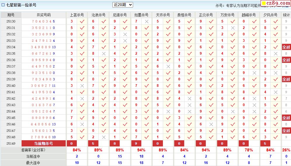 149期彩票专家体彩七星彩定位杀号图表