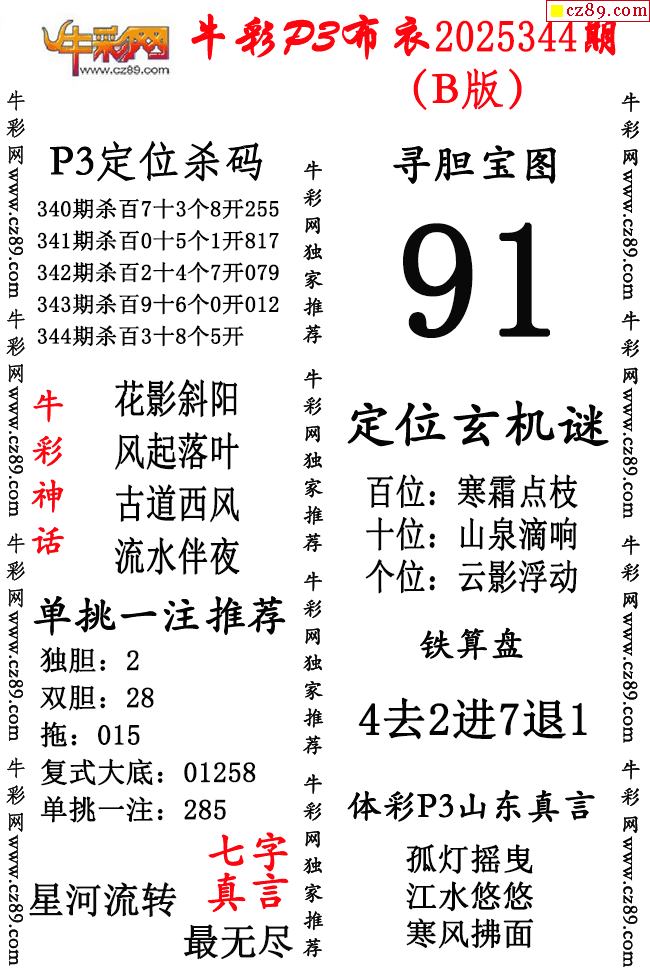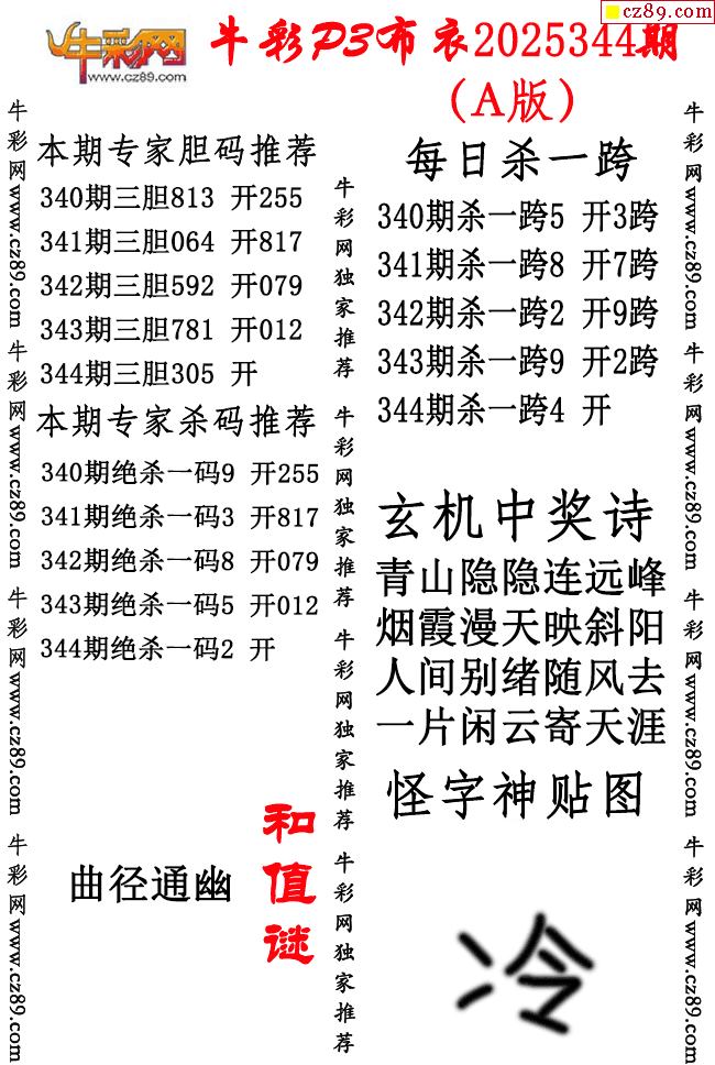 牛彩P3布衣25年344期AB版图谜(精华版)