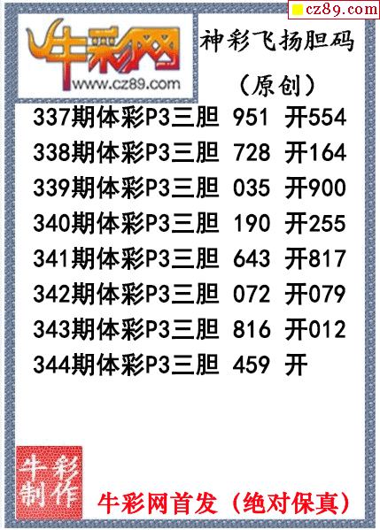 神彩飞扬三胆344期体彩P3图谜(原创)