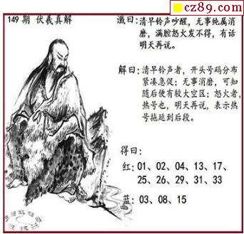 黄大仙杀蓝球149期双色球图谜