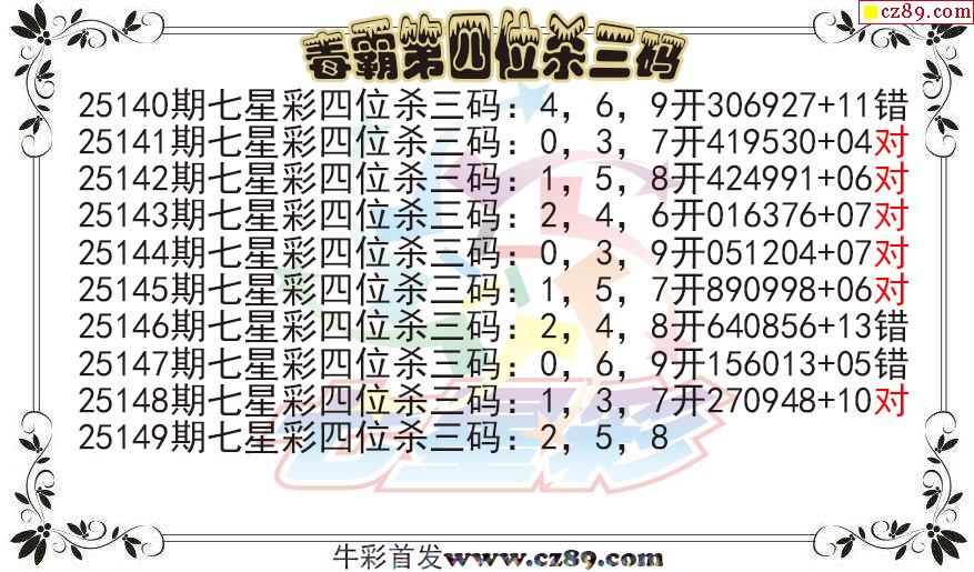 七星彩2025149期毒霸第四位杀三码图迷
