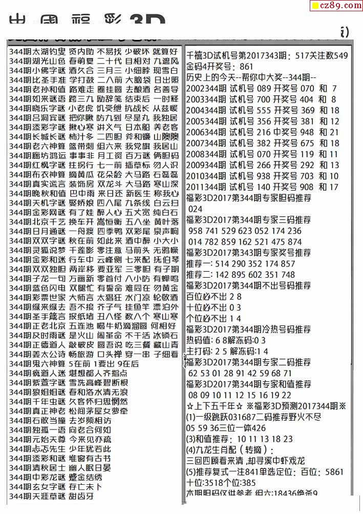 杀手+鑫马快报+字迷汇总25年344期3d图谜