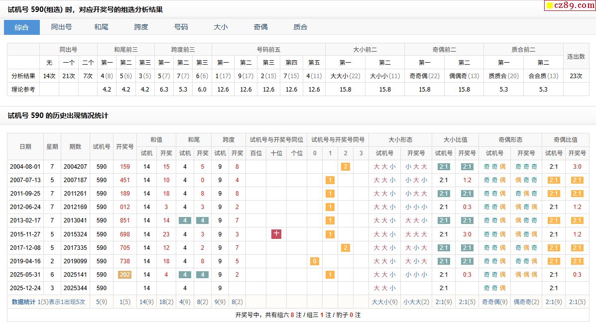 344期福彩3D试机号590对应开奖号的组选分析结果