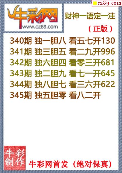 3d字迷总汇2025年345期牛彩版福彩3D今日...