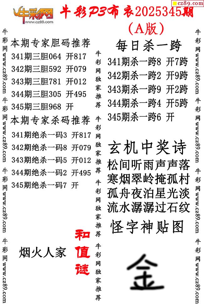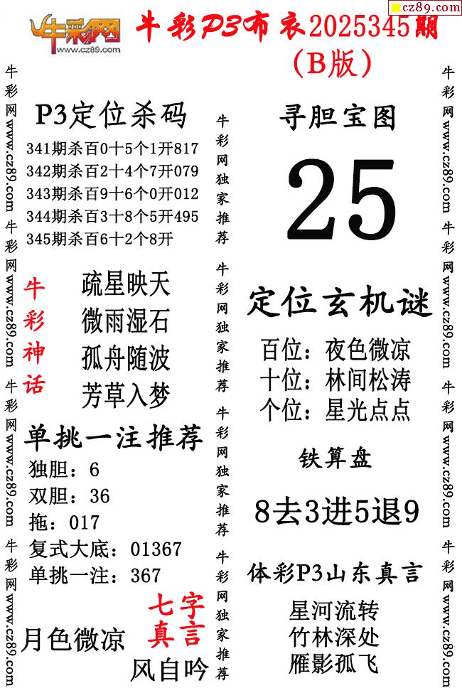 牛彩P3布衣25年345期AB版图谜(精华版)