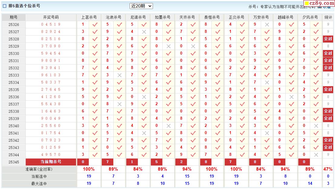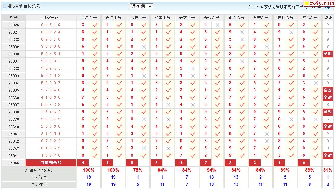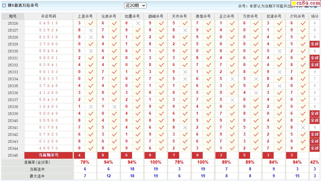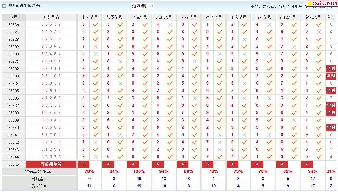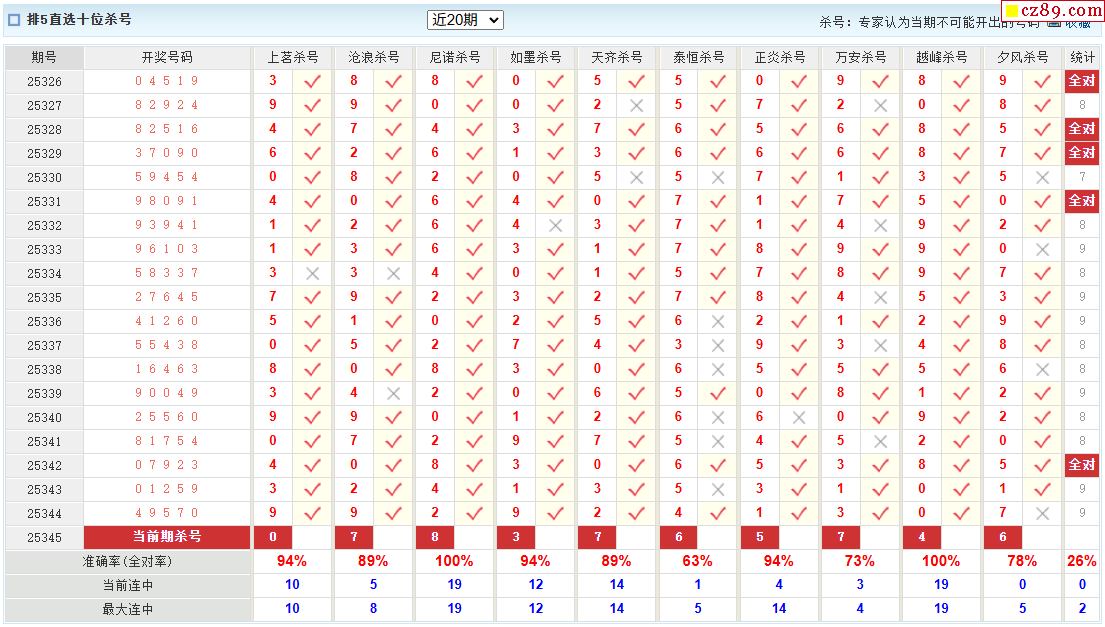 345期彩票专家体彩P5杀号推荐图表