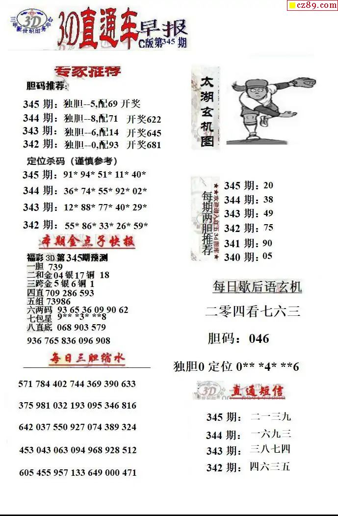 福彩3D2025345期直通车早报ABCD版