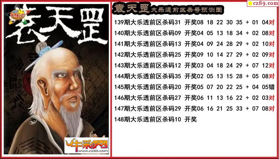 大乐透148期袁天罡前区杀号预测图