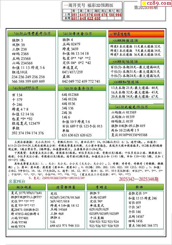 牛彩版3D预测彩报图25年346期打印版