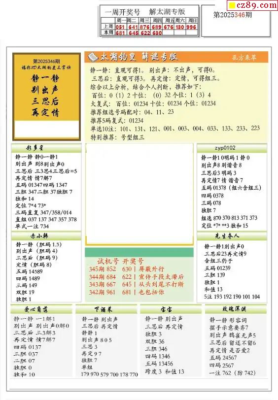 2025346期福彩3D图谜汇总
