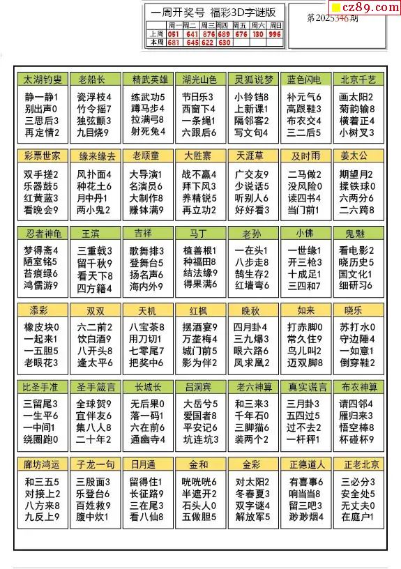 2025346期3d字谜图谜总汇