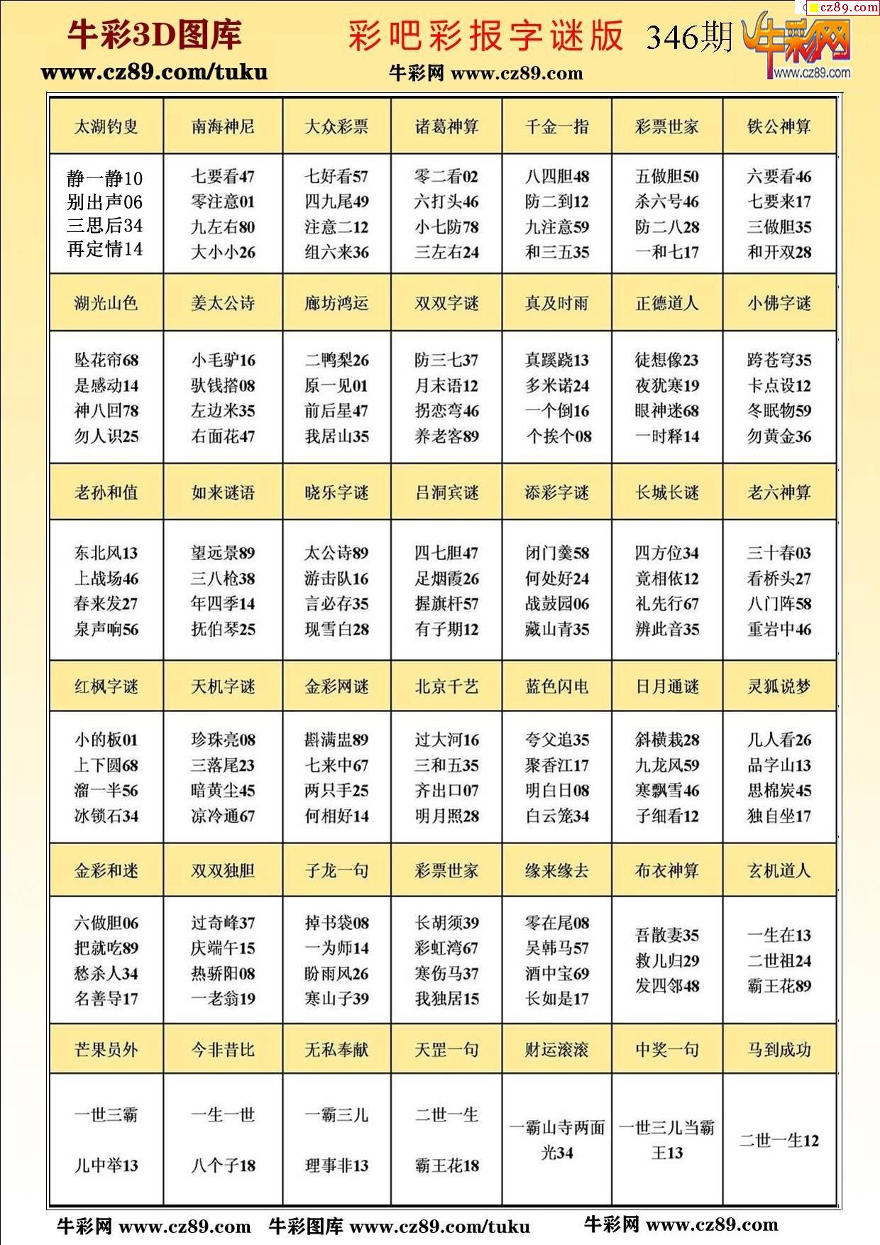 牛彩版3D字谜彩报图25年346期打印版