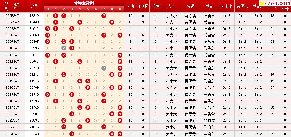 第347期体彩P5历史同期对比